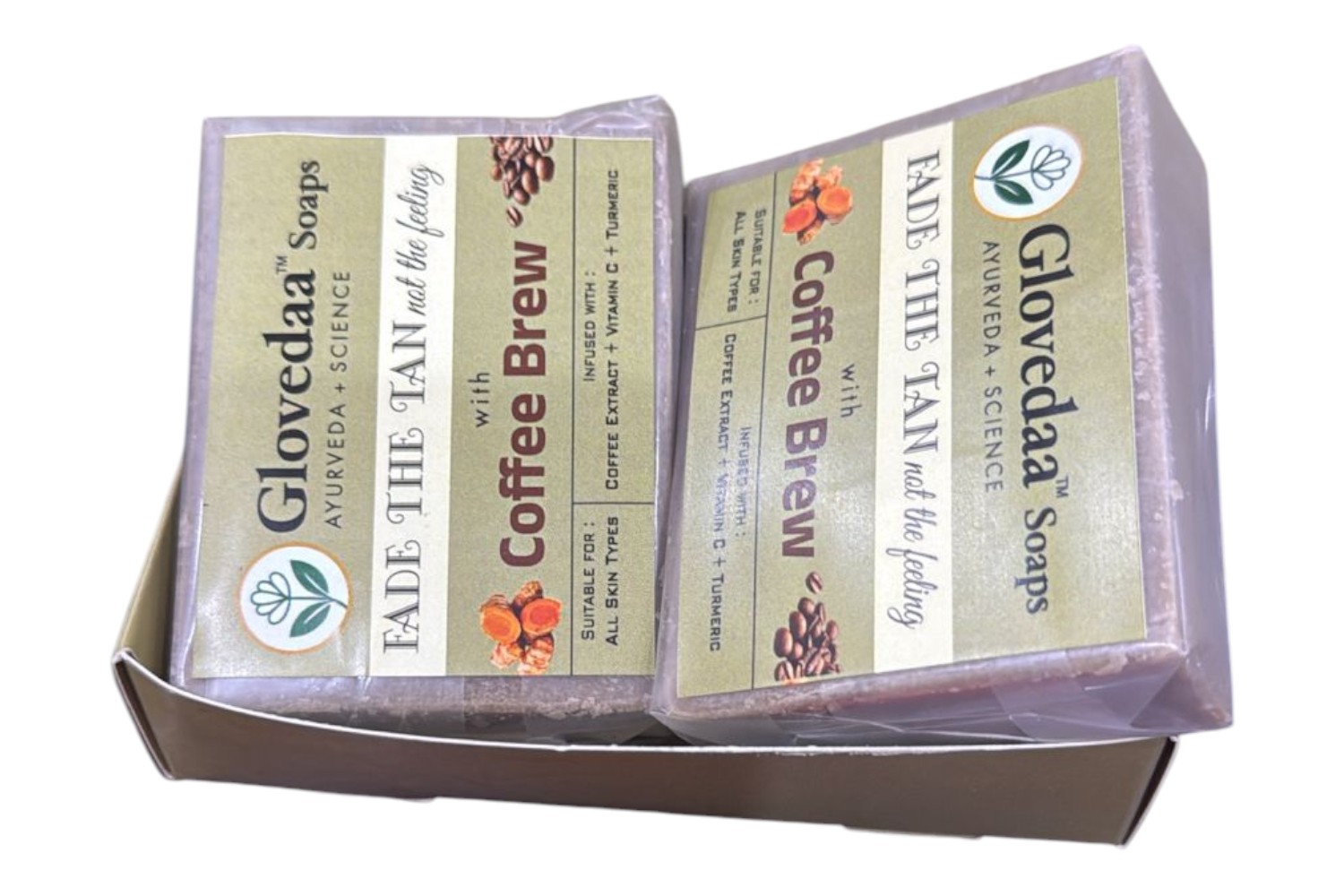 GloVedaa Soaps, Coffee Extract, Turmeric root, Vitamin-C, Orange peel powder, Soap For Bath | Paraben Free | Handmade Soaps For Glowing | Skin Brightening Soap For Men & Women (Pack of 2)